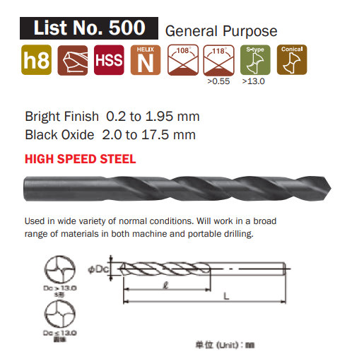 Mũi khoan sắt HSS Nachi List 500 Size 0.22mm