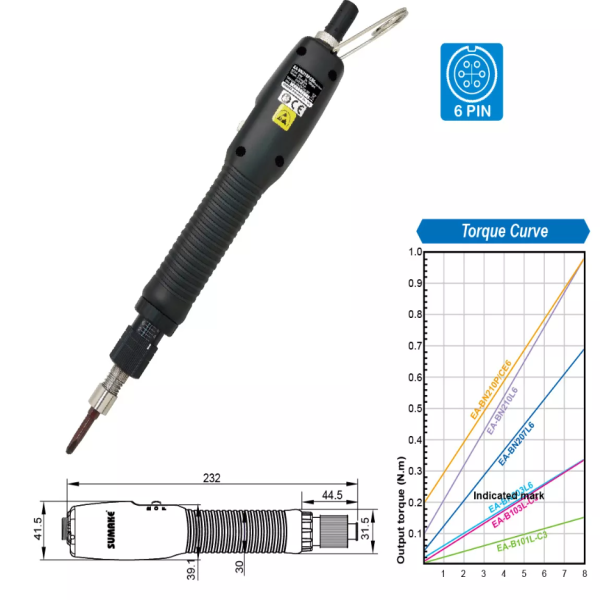 Thiết kế động cơ không chổi than cung cấp độ chính xác khi tắt và tăng khả năng tốc độ chu kỳ. Mang đến thiết kế tiện dụng, bề mặt bám, độ bền vượt trội và hiệu suất tốt, phù hợp cho các công việc lắp ráp đòi hỏi độ chính xác cao như các sản phẩm Đồng hồ, Điện thoại di động, Ổ cứng....